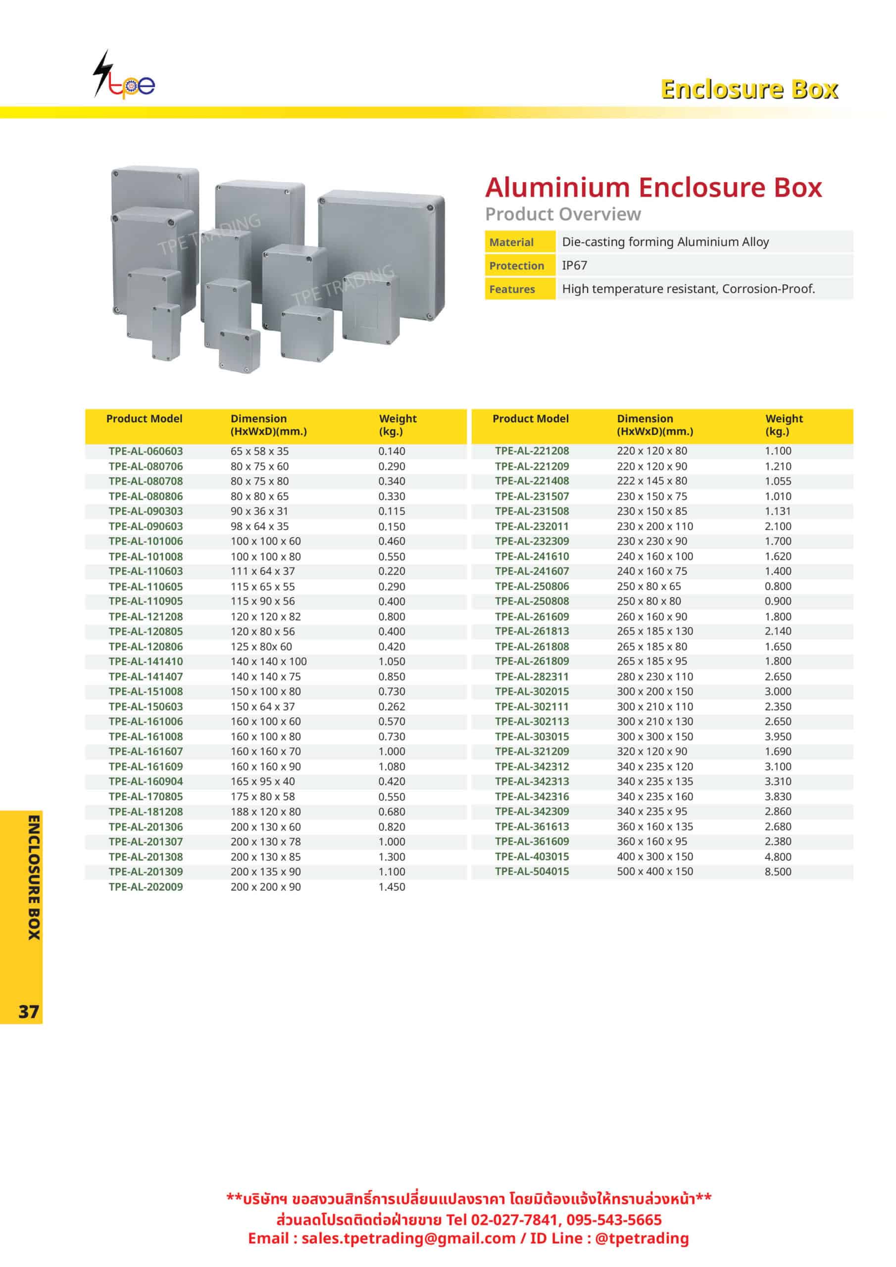 | TPE-AL-232309 | 230 | 230 | 90 | 1.700 |