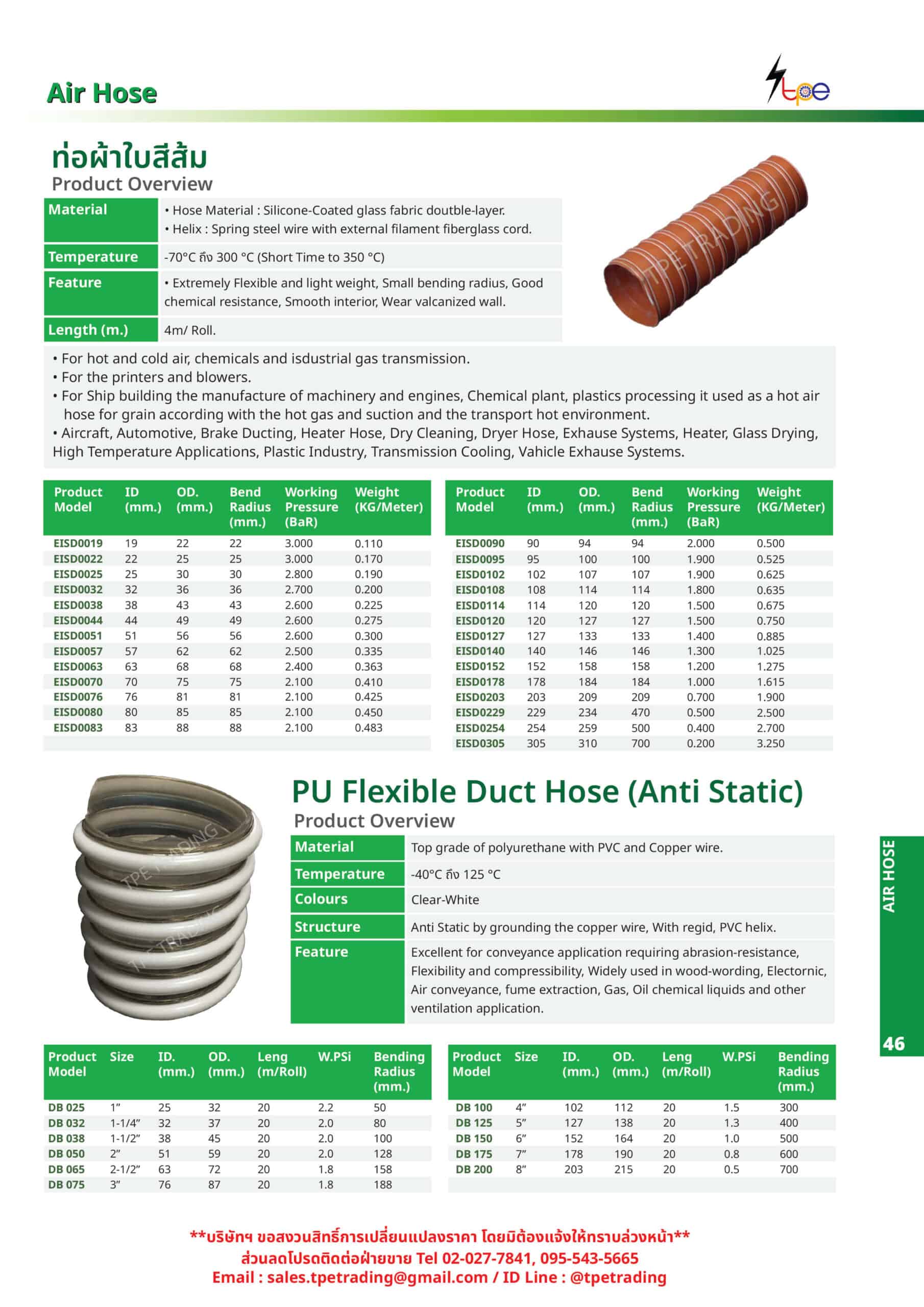 ท่อลมอุตสหกรรมชนิดต่างๆ ไม่ว่าจะเป็น ท่อลมร้อน-ลมเย็น ท่อดูด-ท่อเป่าลม ท่อดูดเม็ดพลาสติก ท่อดูดควันไอเสียรถยนต์