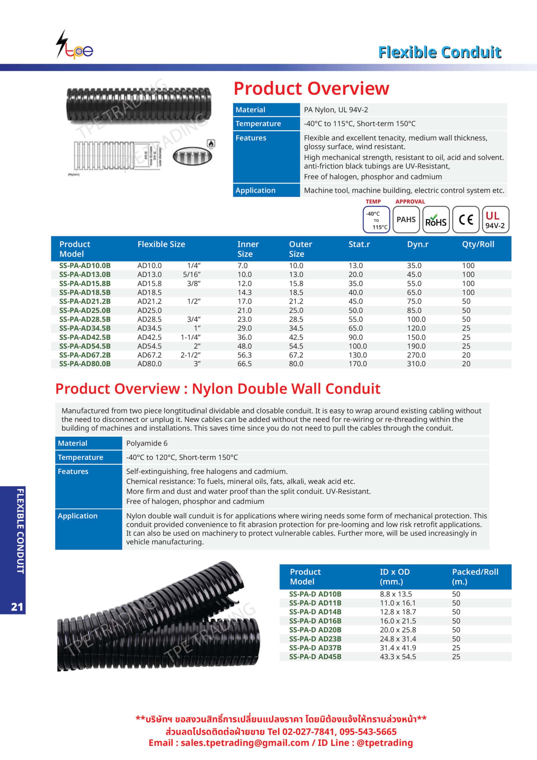 รายละเอียดสินค้า : ท่อร้อยสายไฟพลาสติก PA
