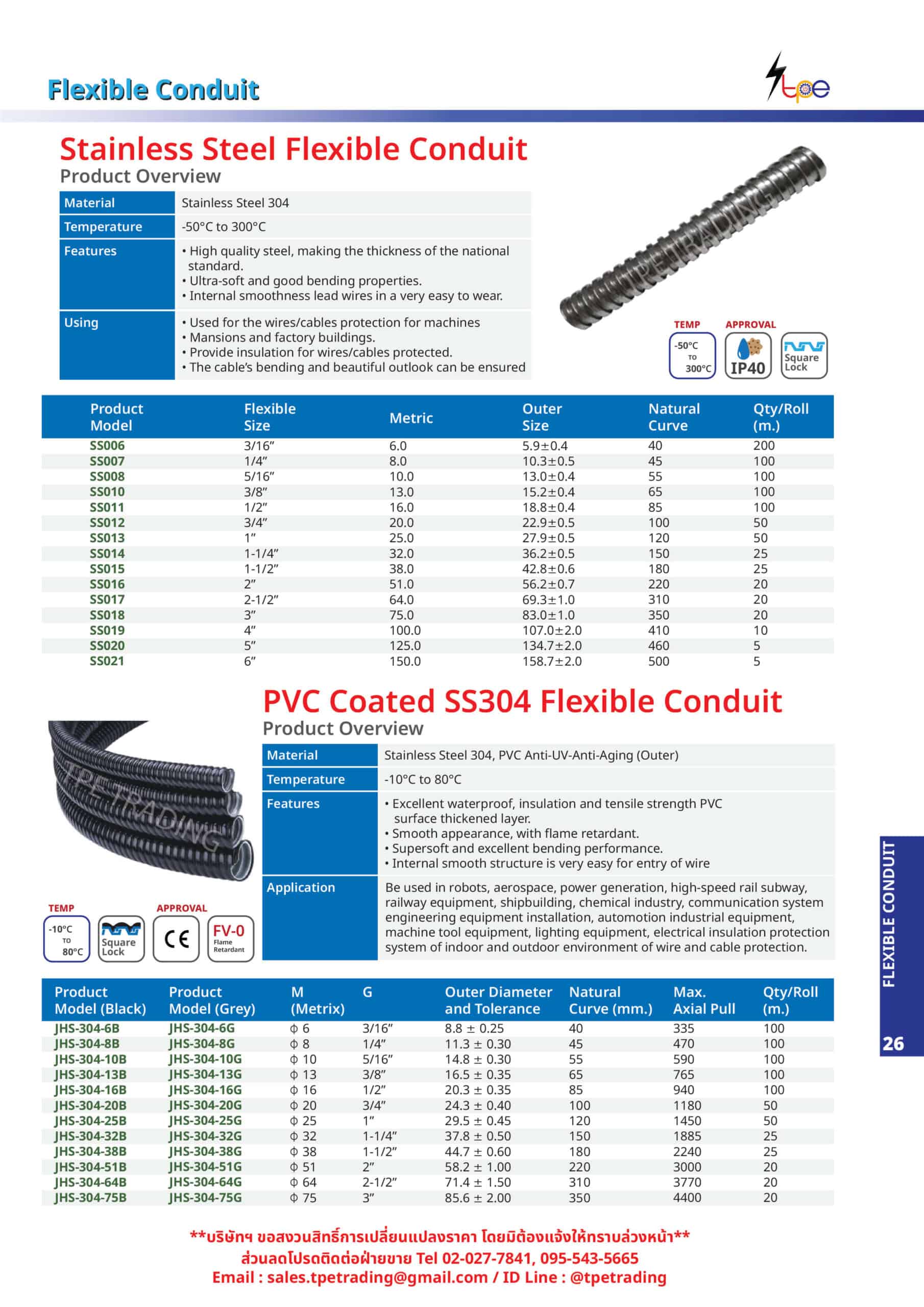 - รายละเอียดสินค้า : ใช้สแตนเลสคุณภาพสูง ในระดับความหนามาตรฐาน สามารถดัดโค้งงอได้ดี ภายในมีความเรียบสามารถร้อยสายไฟได้ง่าย