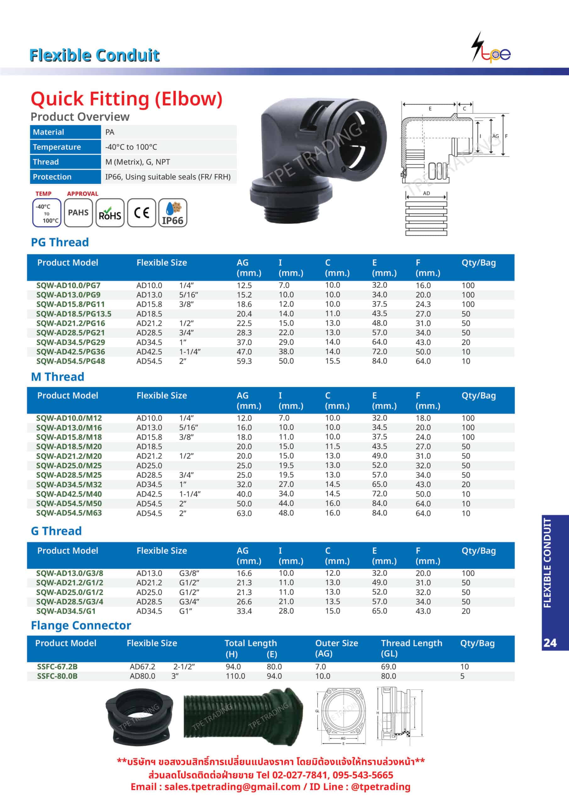 ข้อต่อแบบงอ ข้อต่อท่อร้อยสายไฟพลาสติกแบบงอ (Quick Fitting 90 Angle for flexible plastic)