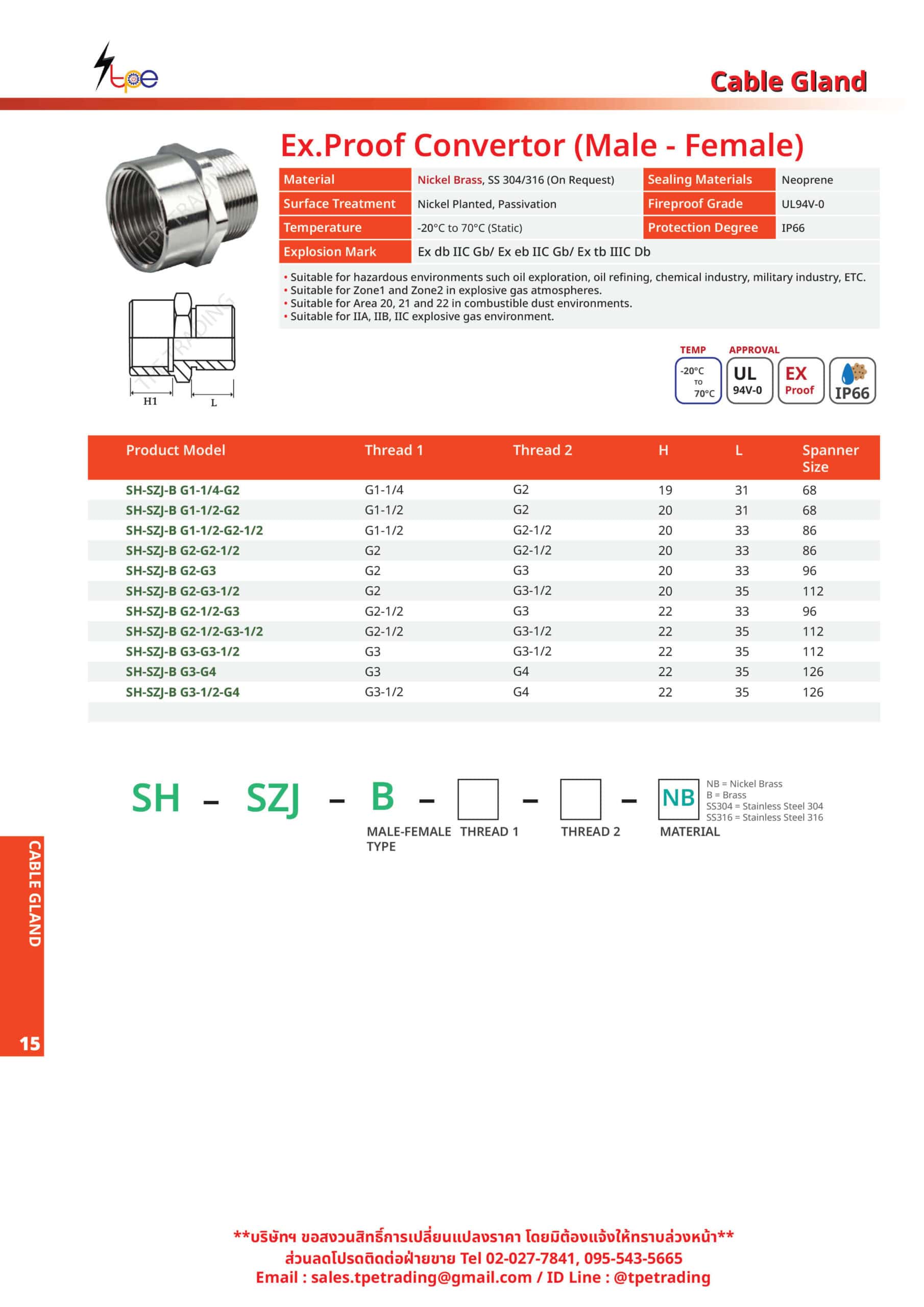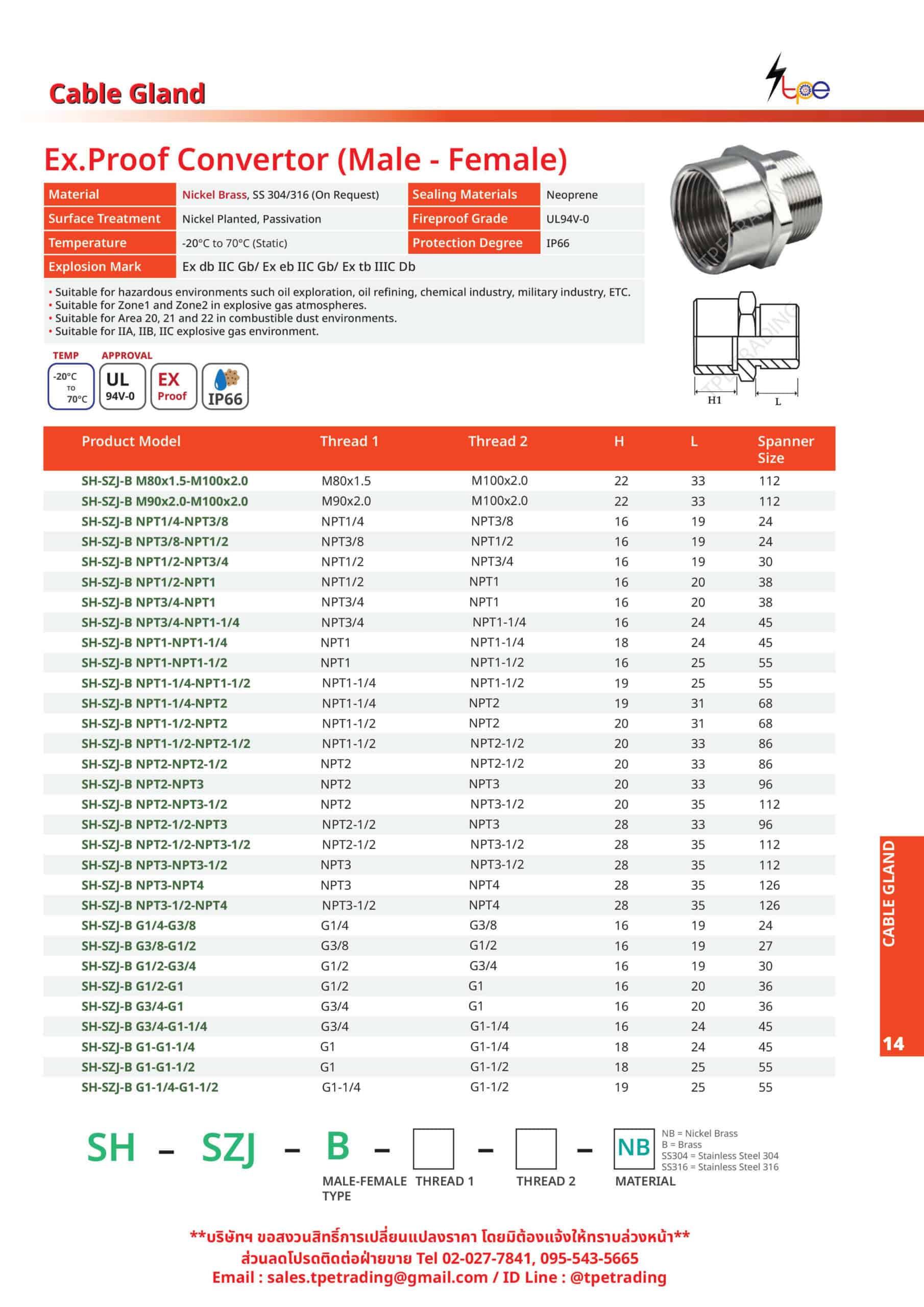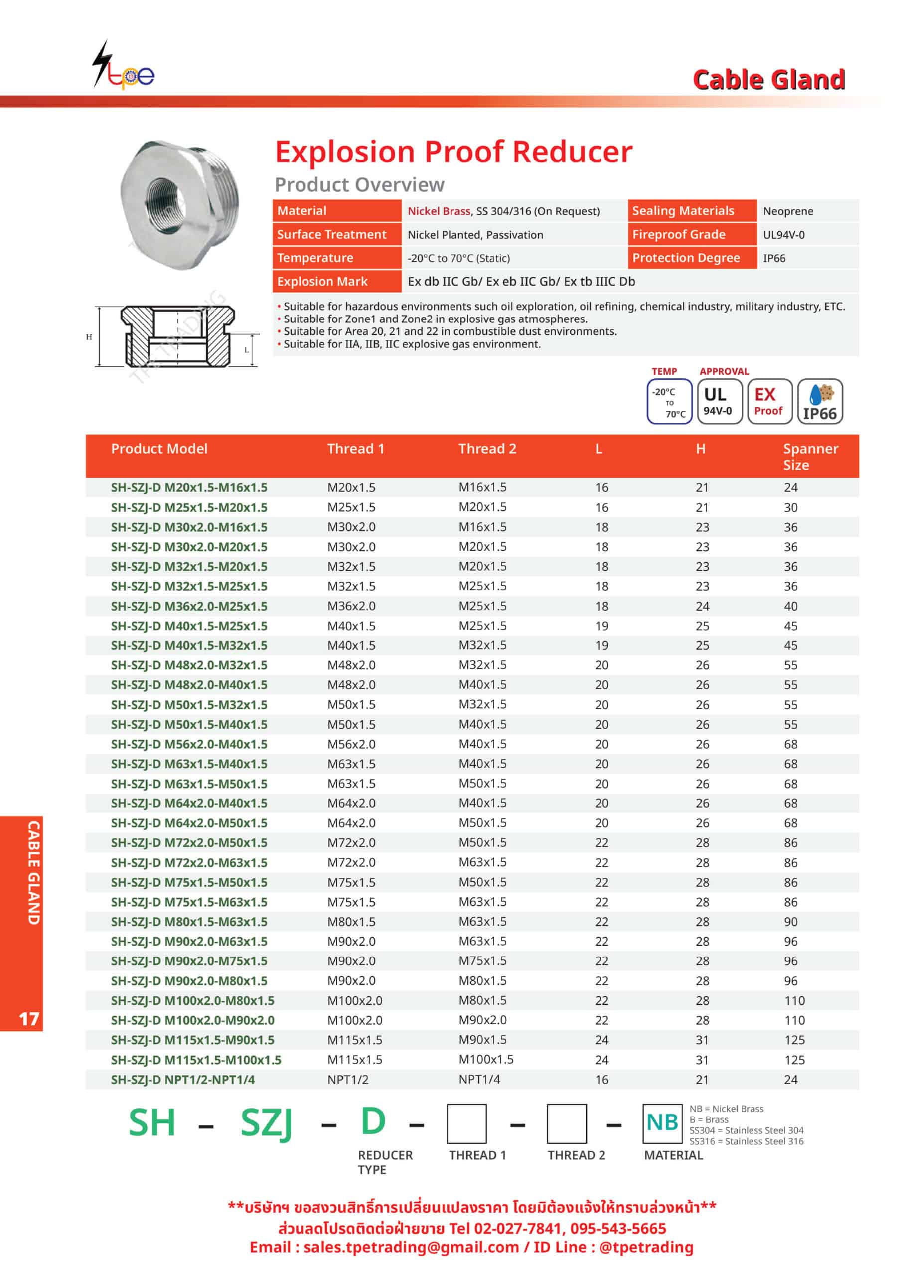 - SZJ = ประเภทสินค้า คือ Explosion Proof Reducer and Adapter