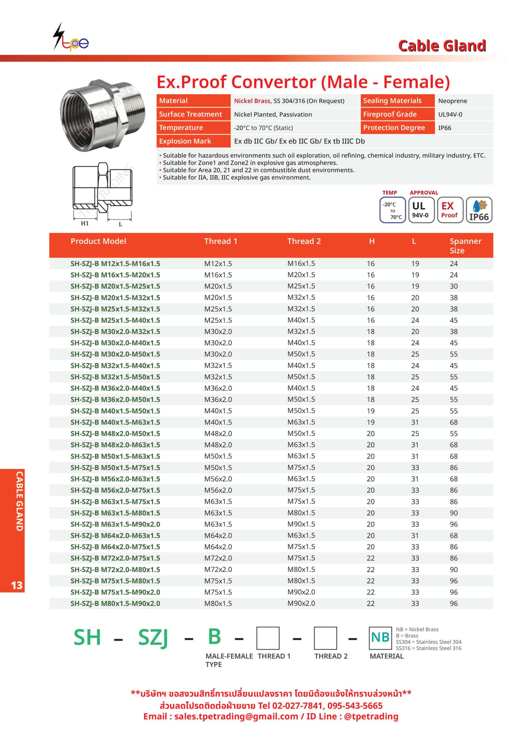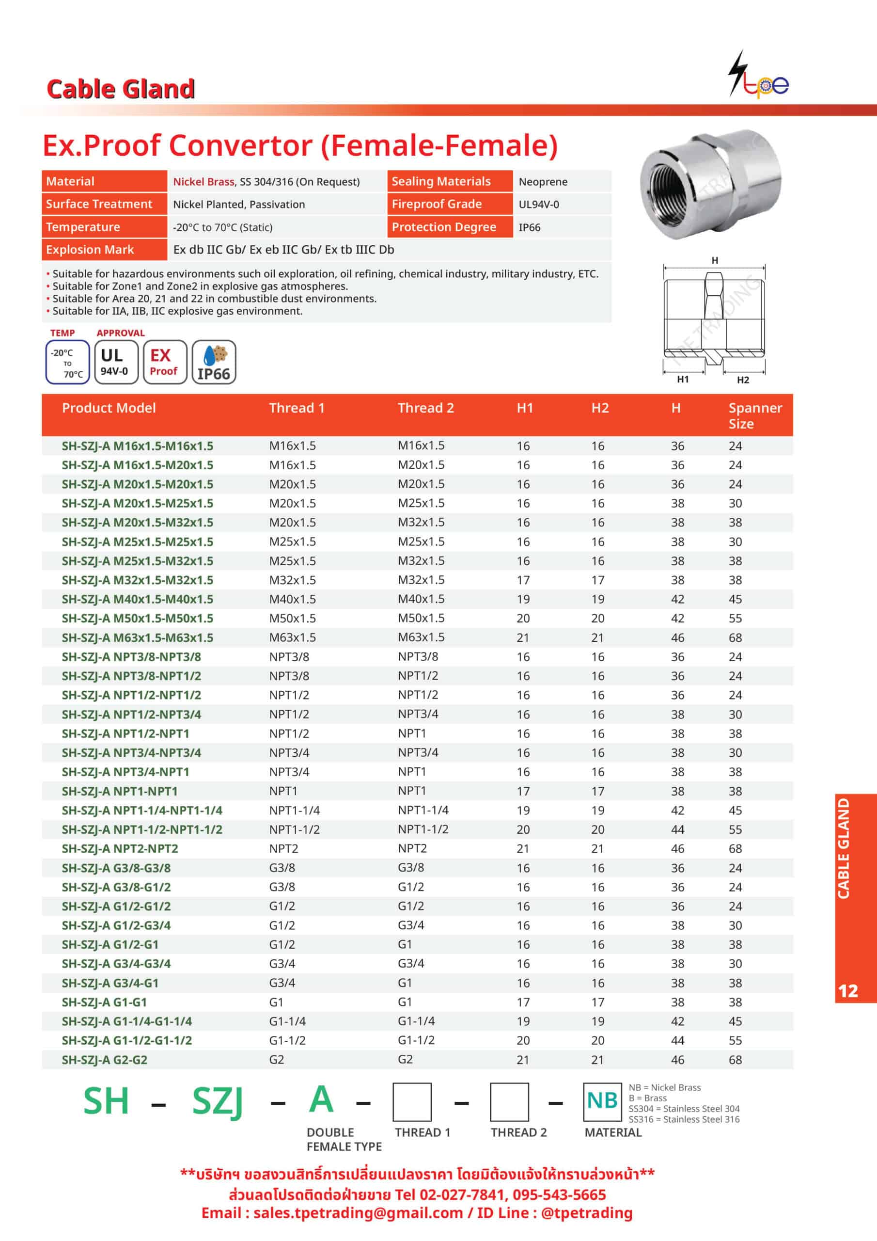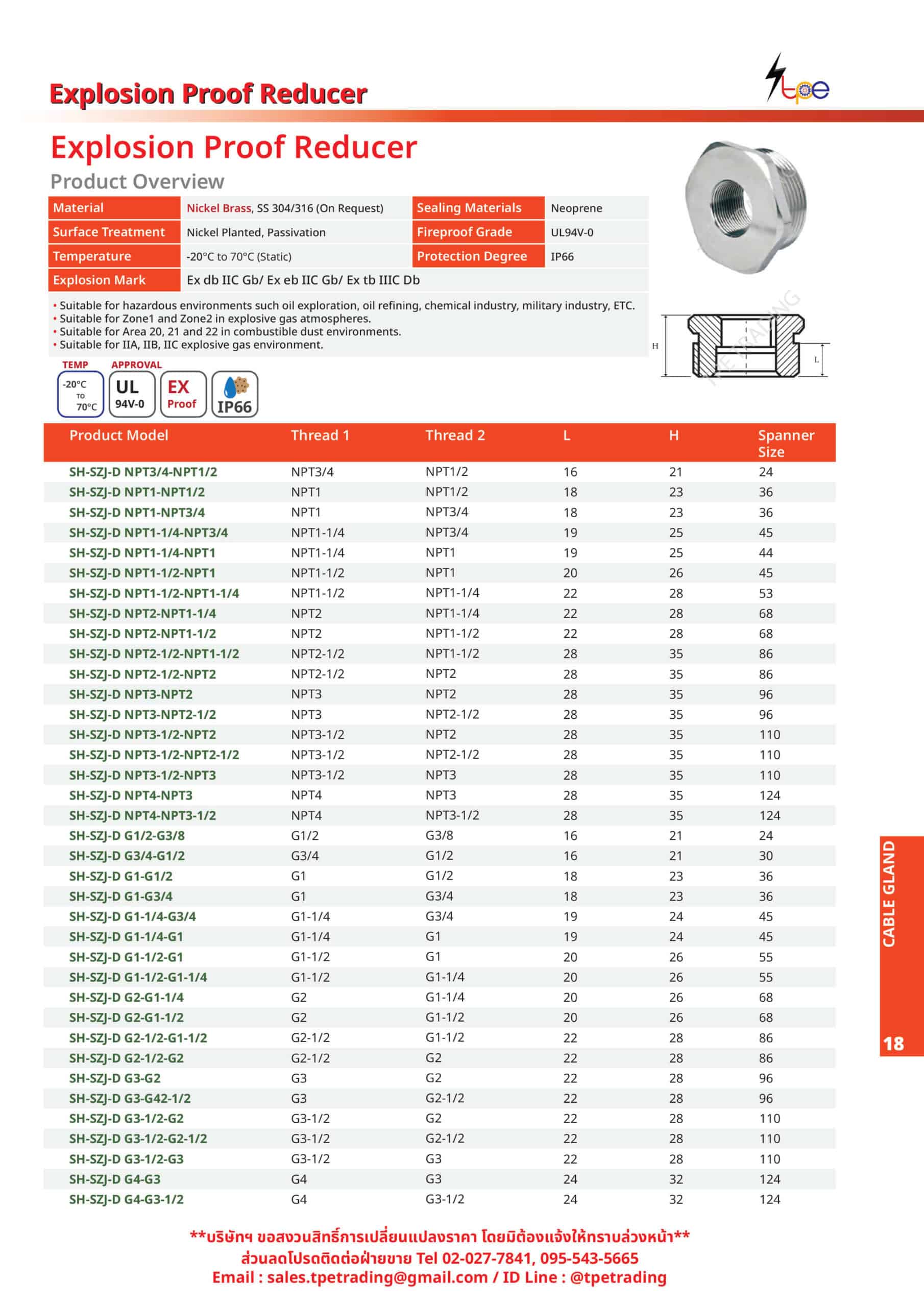 - SZJ = ประเภทสินค้า คือ Explosion Proof Reducer and Adapter