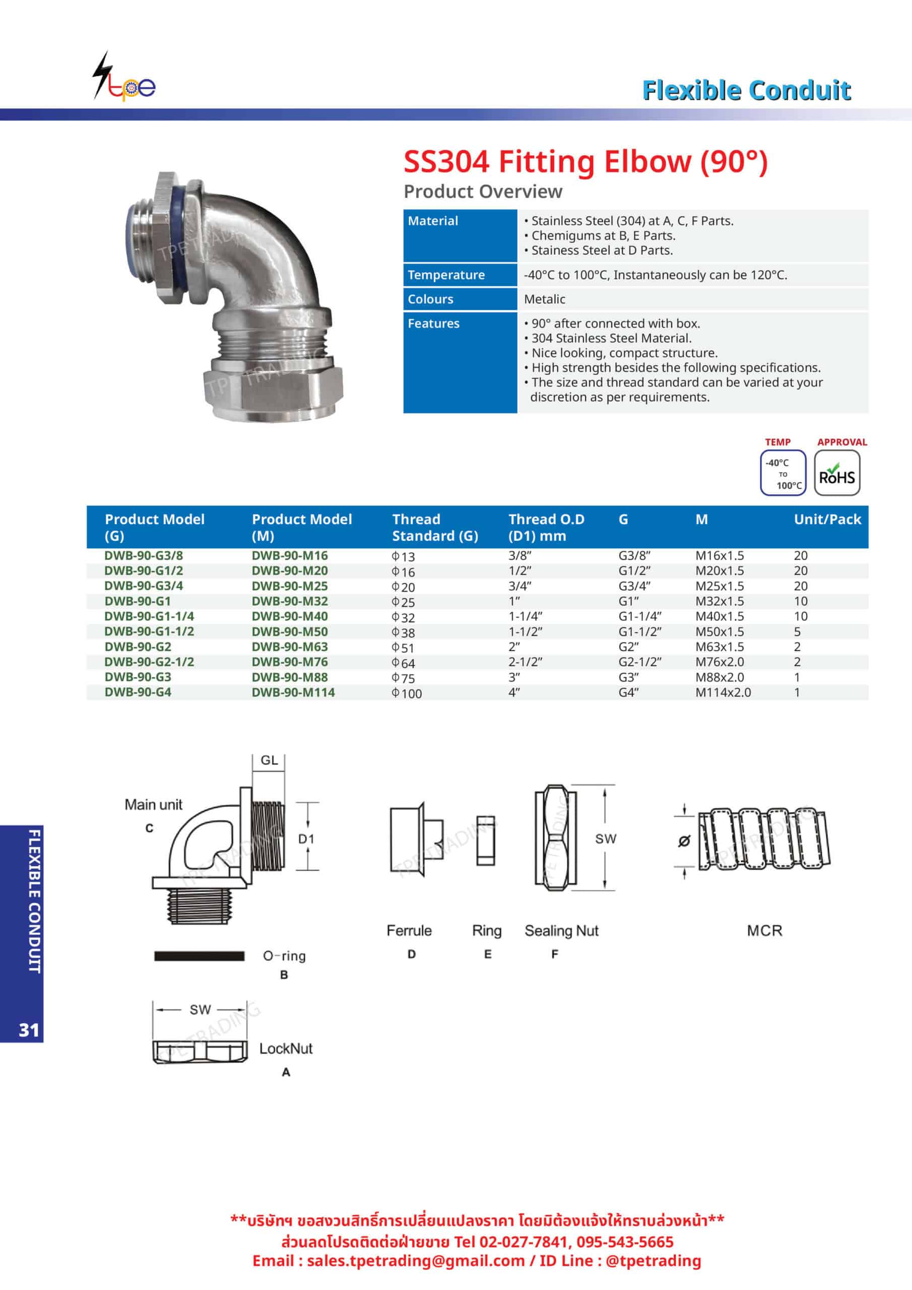 คุณสมบัติสินค้า : ข้อต่อแบบงอสแตนเลส (Stainless Steel 90-Degree Angle Elbow Connector)