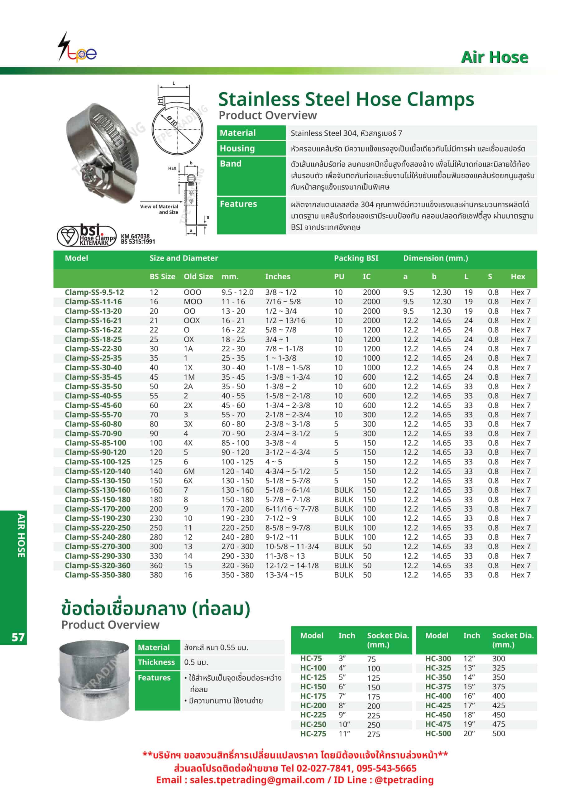 คุณสมบัติของ : แคล้มรัดท่อสแตนเลส (Stainless Steel Hose Clamps)
