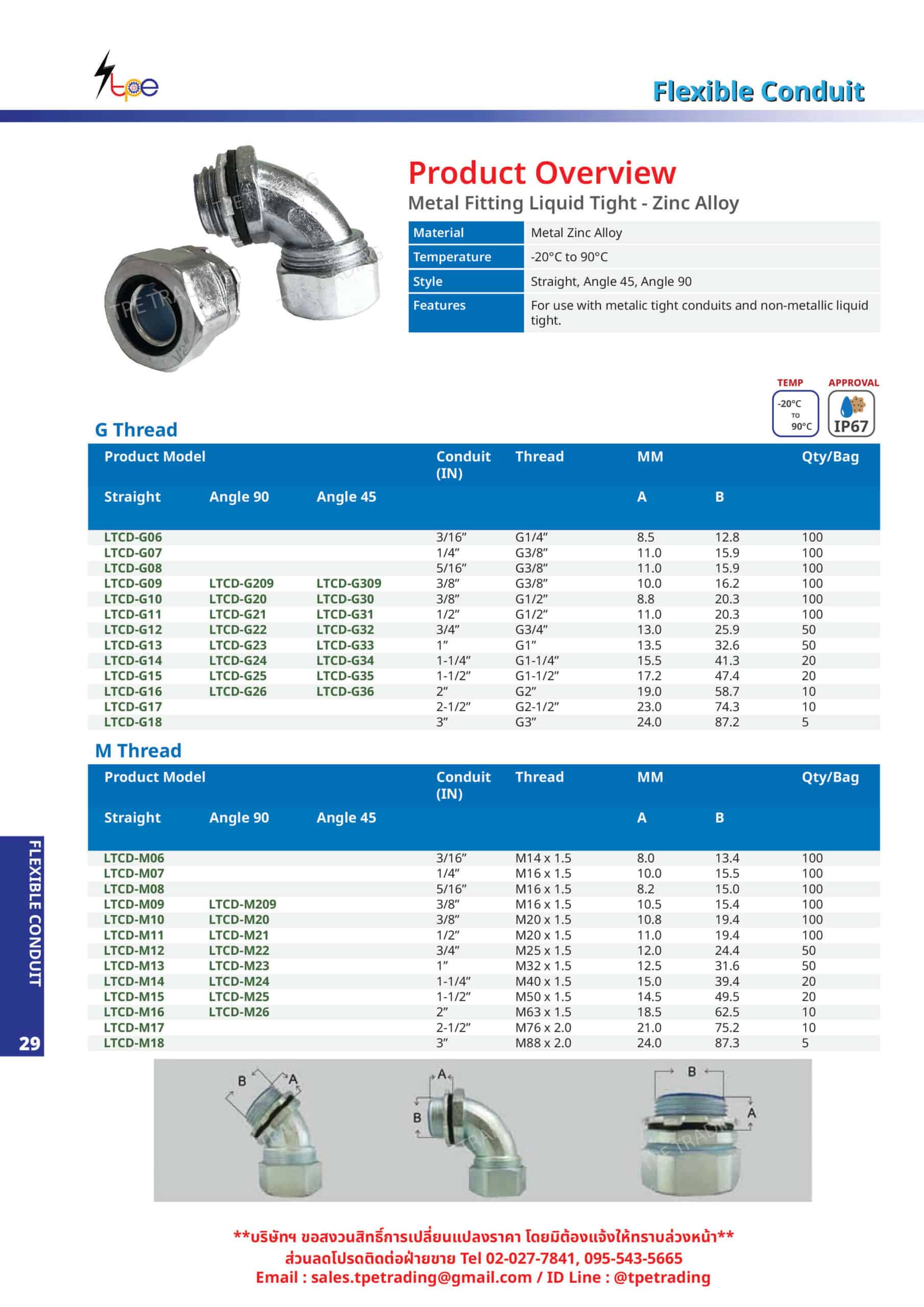 คุณสมบัติสินค้า : ข้อต่อเฟล็กซ์เหล็ก ข้อต่อเฟล็กซ์โลหะ (Metal Fitting Liquid Tight – Zinc Alloy)